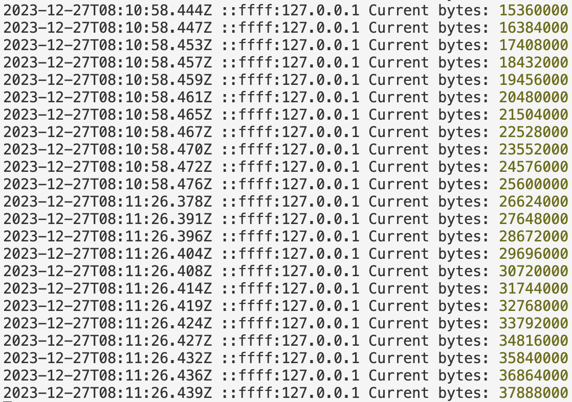 console.log((new Date()).toISOString(), req.ip, "Current bytes:", start)
